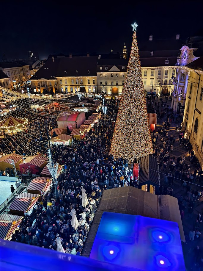 Piața Mare a fost arhiplină, atmosfera fiind electrizată de mirosul de scorțișoară, vin fiert și de freamătul așteptării. Momentul culminant al serii l-a constituit aprinderea instalației impresionante de lumini, care a transformat centrul orașului într-un tărâm feeric.